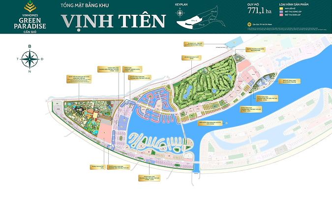 Dự án có quy mô 2.870ha, quy hoạch thành 5 phân khu chức năng gồm ở, nghỉ dưỡng, thương mại và giải trí. Các sản phẩm như căn hộ, nhà phố, biệt thự và shophouse được bố trí hợp lý, đáp ứng mọi nhu cầu an cư và khai thác đầu tư.