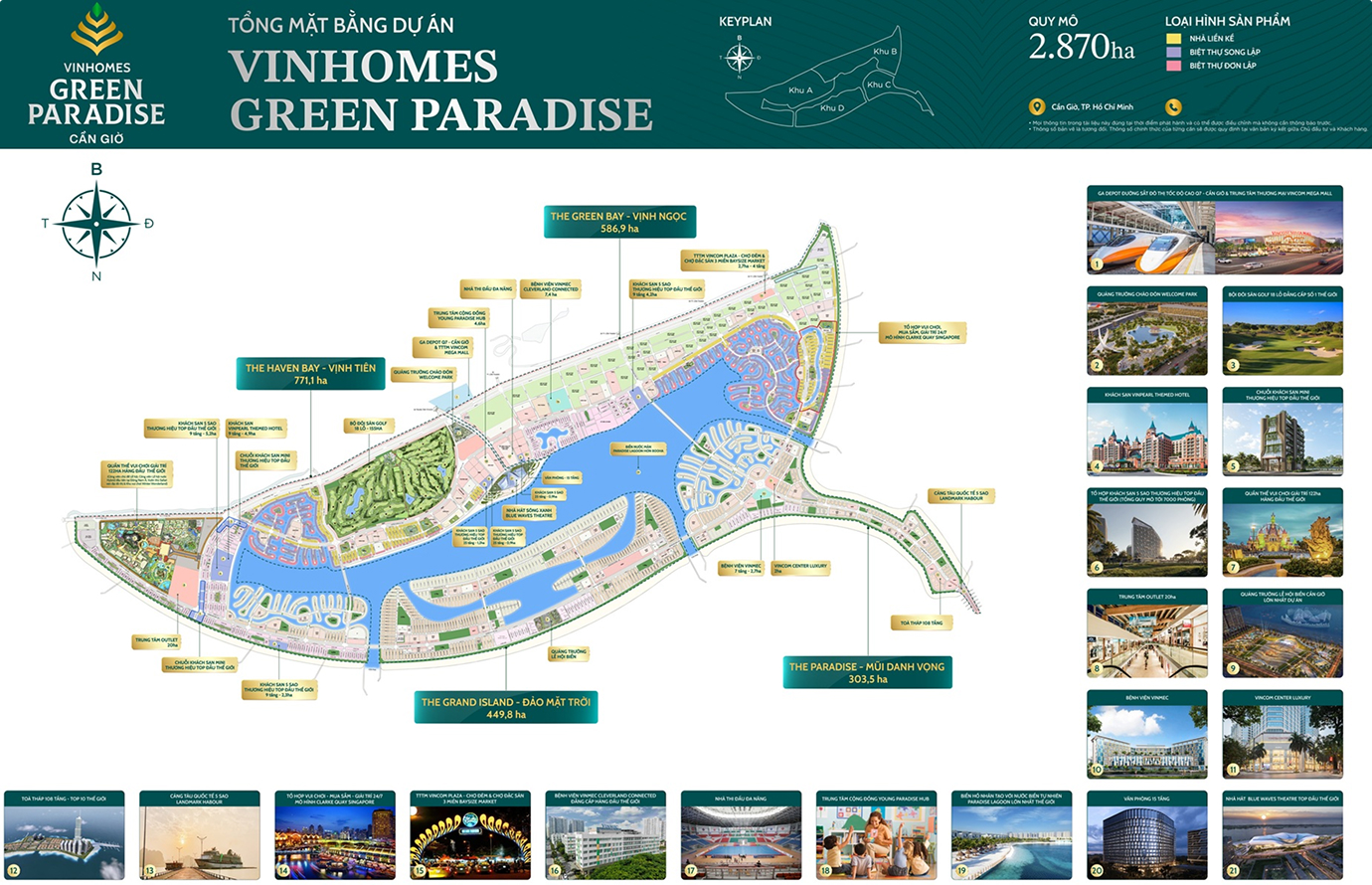 Dự án Vinhome Green Paradise tọa lạc xã Cần Giờ, Thành phố Hồ Chí Minh. Nơi đây là cửa ngõ giao thoa, trung tâm phía Đông của Thành Phố tầm nhìn 2030 nhờ sự phát triển vượt bậc về hạ tầng – Tiện ích – Giáo dục và thương mại và môi trường sống.