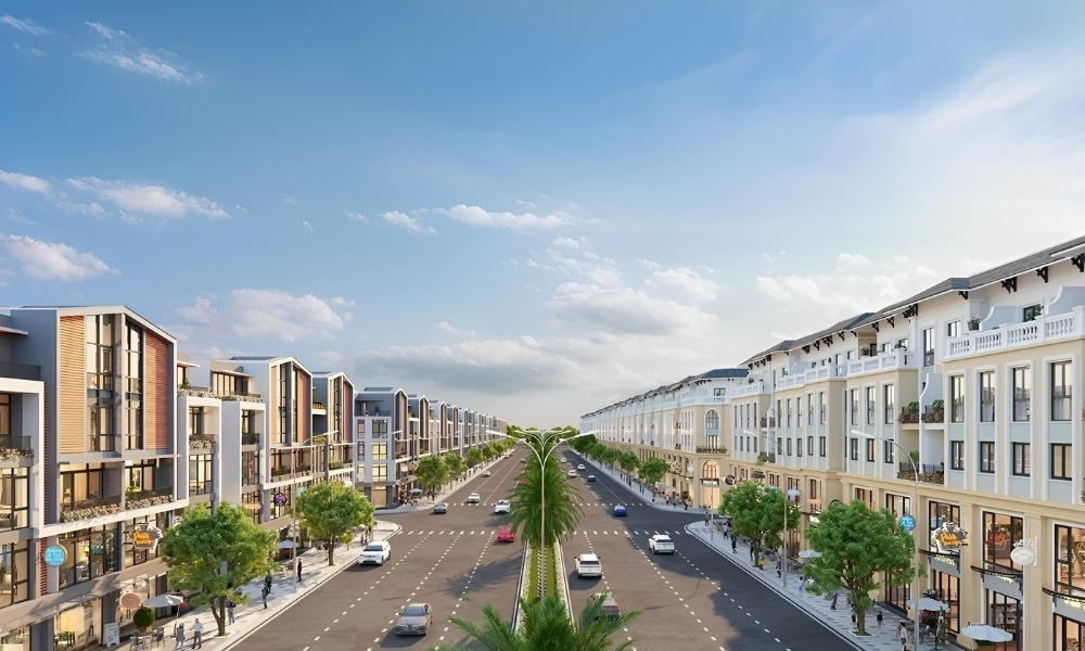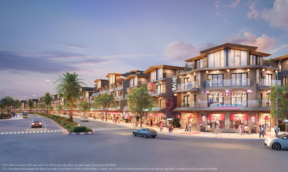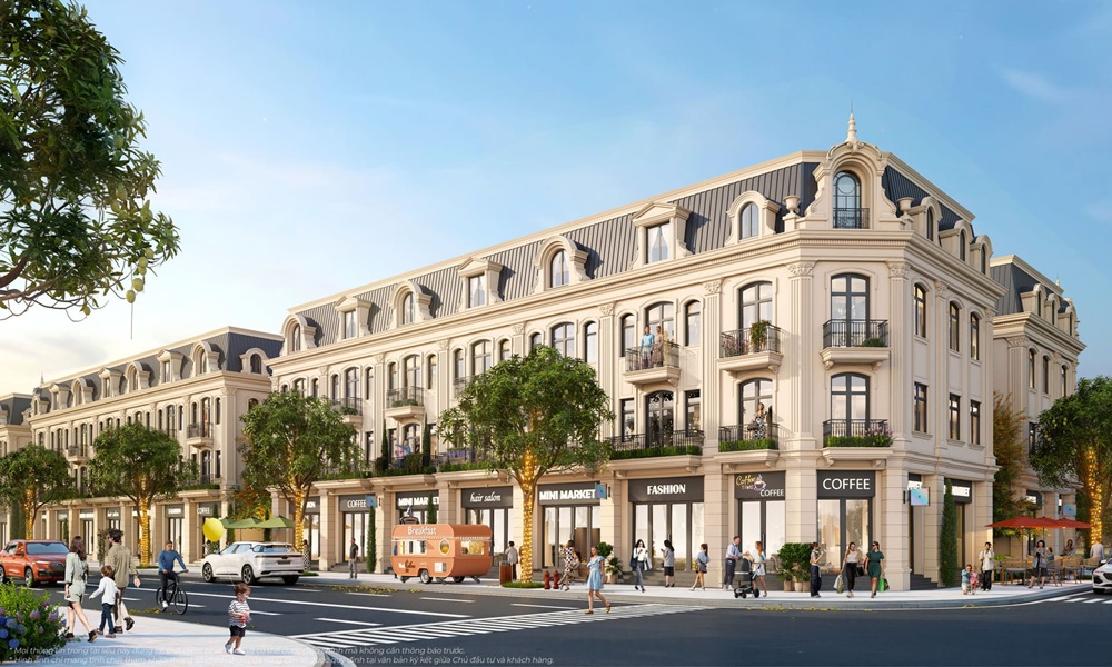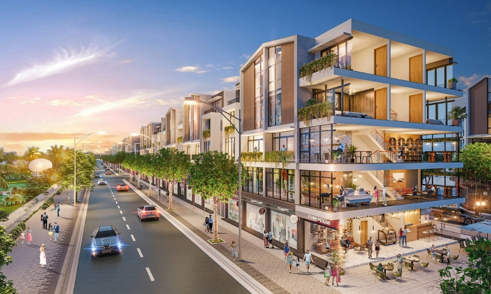 Phần mặt ngoài của shophouse được hoàn thiện đồng bộ với hệ cửa kính lớn, ban công và các chi tiết kiến trúc đặc trưng của từng phân khu. Không gian bên trong được bàn giao thô để chủ sở hữu chủ động thiết kế theo mô hình sử dụng. Cách bố trí này giúp căn nhà linh hoạt giữa nhiều mục đích như kinh doanh, làm văn phòng, lưu trú hoặc vừa ở vừa khai thác thương mại.